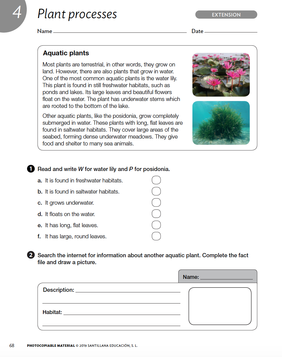 Y finalmente en el 2 haced un ejercicio de búsqueda de información en internet sobre una planta acuática.