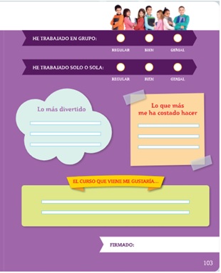 El curso termina y el libro también, así que hoy os propongo algo muy relajado, pensar y reflexionar sobre todo lo que hemos aprendido este curso en ciencias, lo que más te ha gustado, algo nuevo que has descubierto, dos cosas que no olvidarás, un experimento que hayas hecho, lo más divertido, lo que más te ha costado hacer, lo que te gustaría aprender el próximo curso sobre ciencias sociales o naturales. Os dejo unas fichas para que sea más fácil organizar esas respuestas. Feliz verano a todos y todas, habéis trabajado fenomenal y me siento muy orgullosa.
